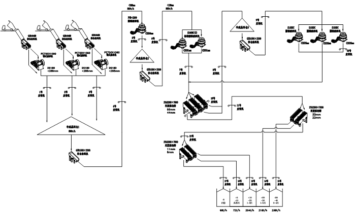 碎機(jī)+標(biāo)準(zhǔn)圓錐機(jī)+短頭圓錐機(jī)(閉環(huán))組 成。對于15萬方/月以下的場合,通常采用的是 “三段一閉環(huán)” 工藝,對于15萬方/月以上的場合,通常采用的是