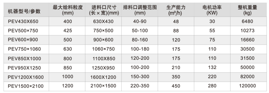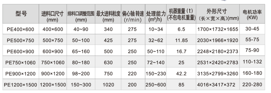 四、顎式破碎機(jī)技術(shù)參數(shù)——高強(qiáng)度鉚焊架體(歐版)